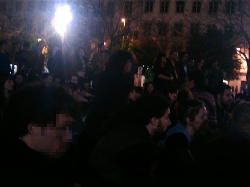 Alguien leyó algunos casos concretos de ciudadanos portugueses que se encuentran en una situación realmente lamentable -¡y evitable!-, desahuciados que, con cargas familiares, no pueden hacer frente a la vida. Después se continuó la música, hasta las 22.00 h., cuando comenzó la asamblea popular. ¿Números? No los conté... Cuanta más gente hubo fue a partir de las 22.00 h. En las dos horas de máxima afluencia, desde esse momento hasta media noche, calculo -a ojo- entre 200 y 300 personas, docena arriba, docena abajo.