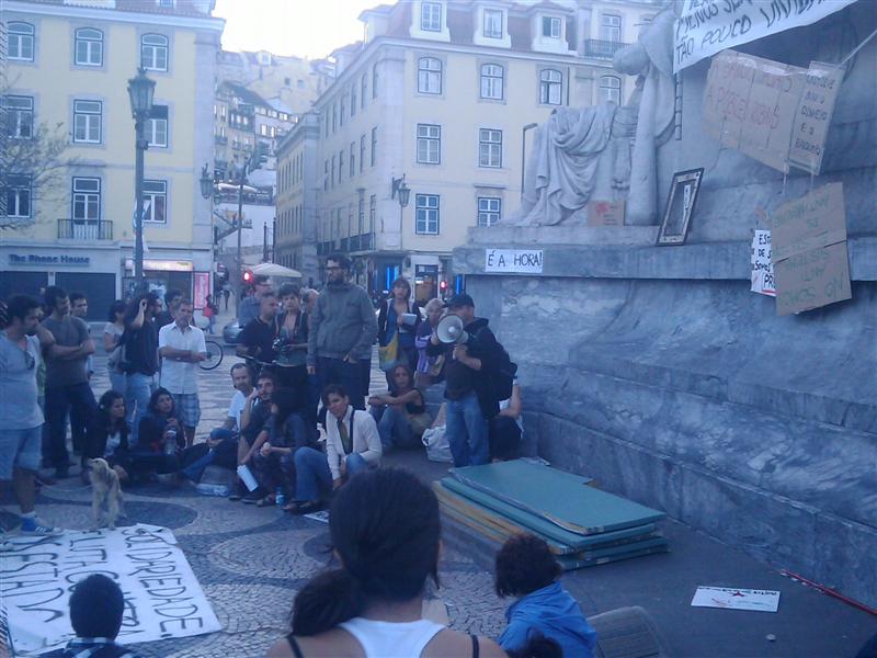 Así, un buen grupo de ciudadanos portugueses están instalados en Rossio organizándose y continuando este movimiento ciudadano global, con vistas, en primer lugar, a sus elecciones del 5 de junio.